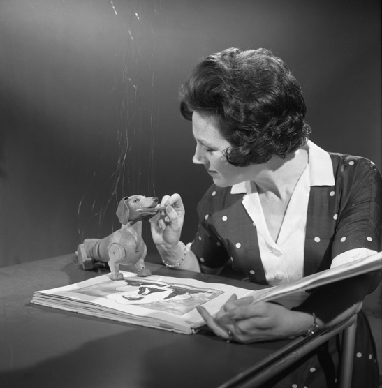 About 10% is on-screen props and related items. The list includes parts of an original Tardis console from Doctor Who, fibre glass moulds used to make Daleks, the Fimbles, Kenny Everett’s big hands, and wooden replicas of Muffin the Mule, the Woodentops, and Sausage the Dog (my favourite object in the collection).