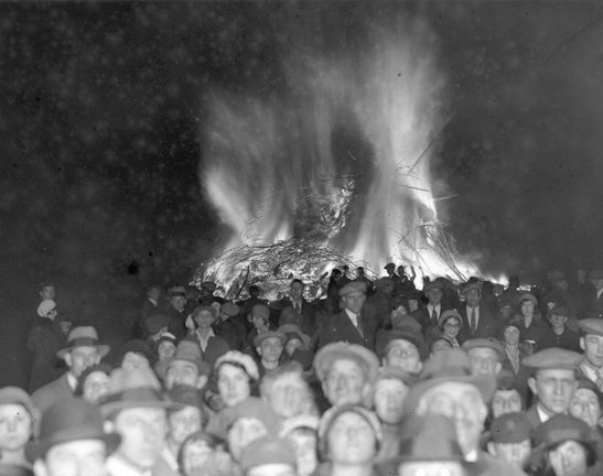 Looking through the Science and Society Picture Library, I only spotted a couple of photographs of Bonfire Night in all its illuminating glory: an eerie image circa 1930s, with Sydney Harbour Bridge in the background, and a Surrey crowd enjoying Guy Fawkes Night in 1931—look at the size of that bonfire!