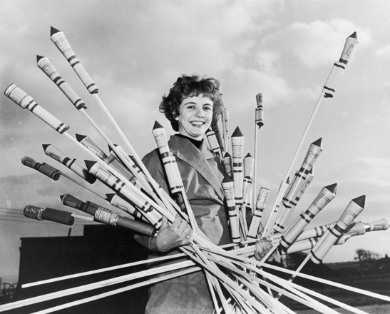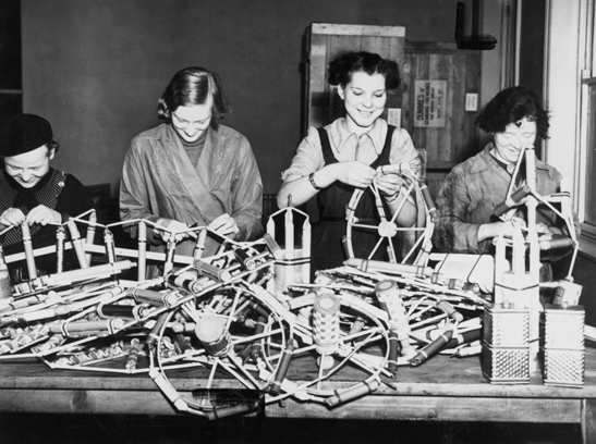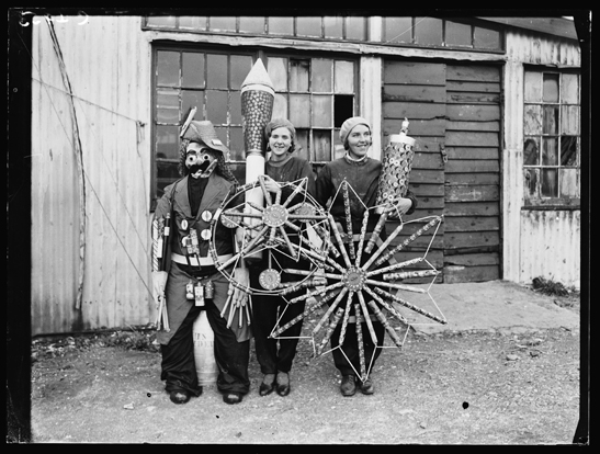 As Bonfire Night came around, a trip to the local fireworks factory would have made a great topical news story. In this photograph from 1933, factory workers at Brocks pose with a life-size Guy Fawkes character. The women are displaying giant rockets and catherine wheels produced at the factory, and the Guy is packed with fireworks.