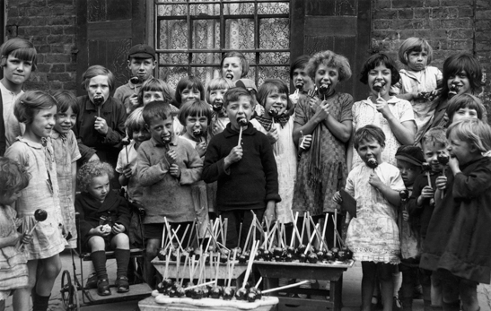 During the War, because of the blackout at night, children could not have bonfires and fireworks on 5 November. However they still collected money for the Guy, and some families had parties with toffee apples and parkin to celebrate the occasion.