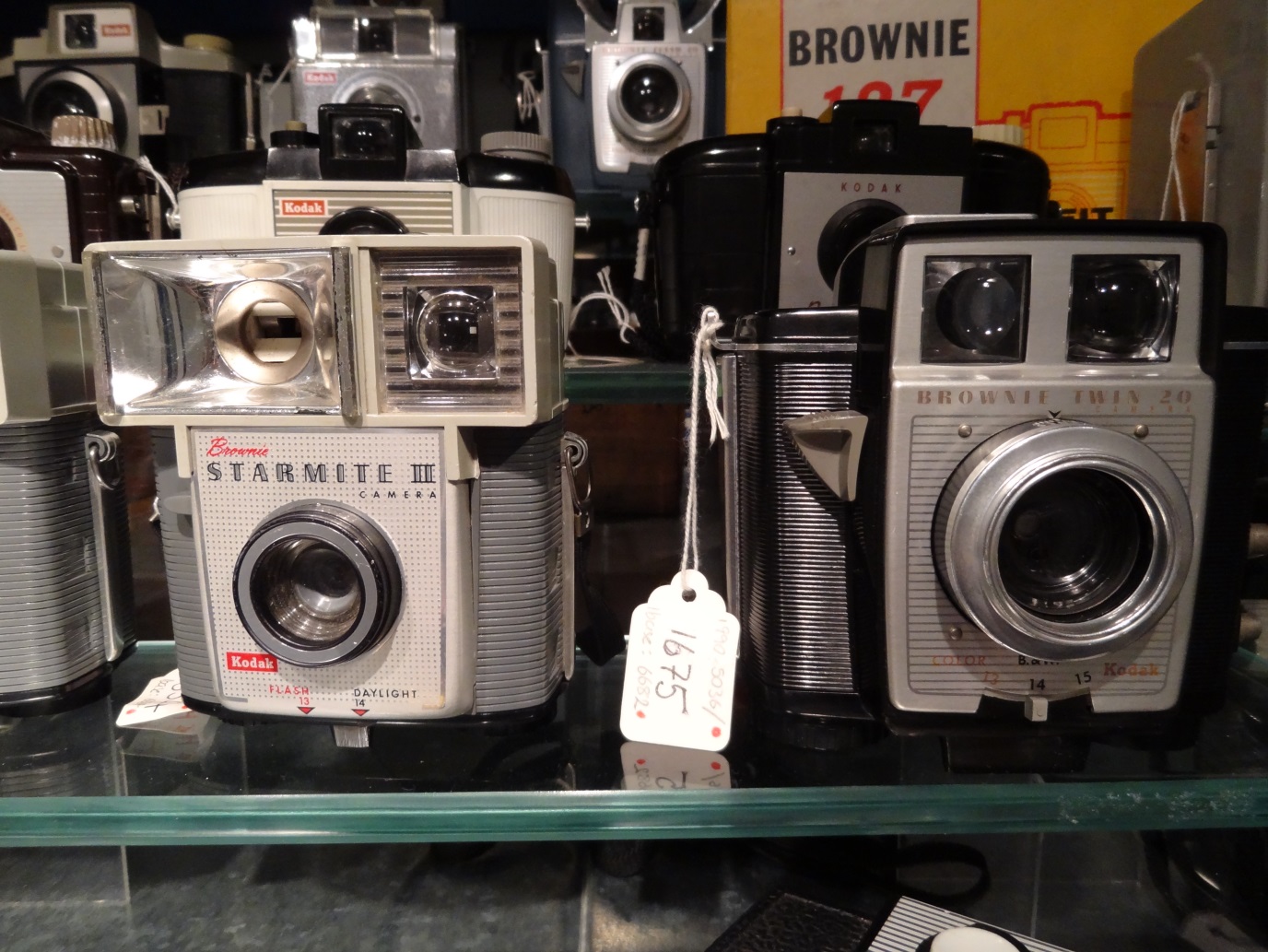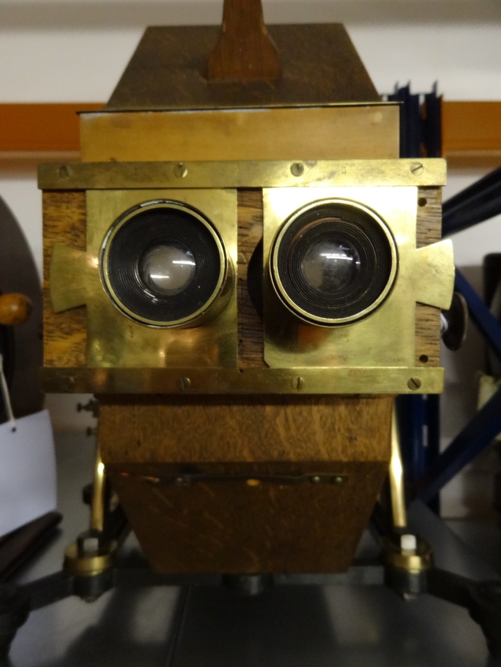 To coincide with In Your Face I thought I would take the concept of Pareidolia; where the mind interprets a familiar pattern, often a face, and apply it to our collections. In the exhibition we demonstrate this through a series of images of clouds that look like faces, picked out by facial recognition software. I think this effect is particularly easy to see in things like cameras, since the glass in the lenses is reminiscent of eyes. Here are some examples I found in our collection: