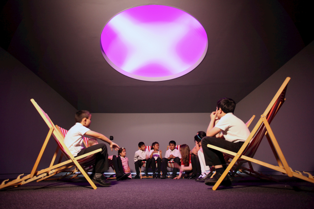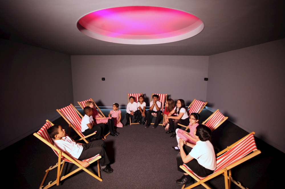 For a collective, focused listening experience, audiences sit on deckchairs in a specially built sound space. The aim is to encourage listeners to hear unfamiliar sounds and consider sound—and how we listen—in a different way. The listening experience was designed as a ‘coming together’ and has something of a ritualistic feel, enhanced by the lighting and cocooned environment.