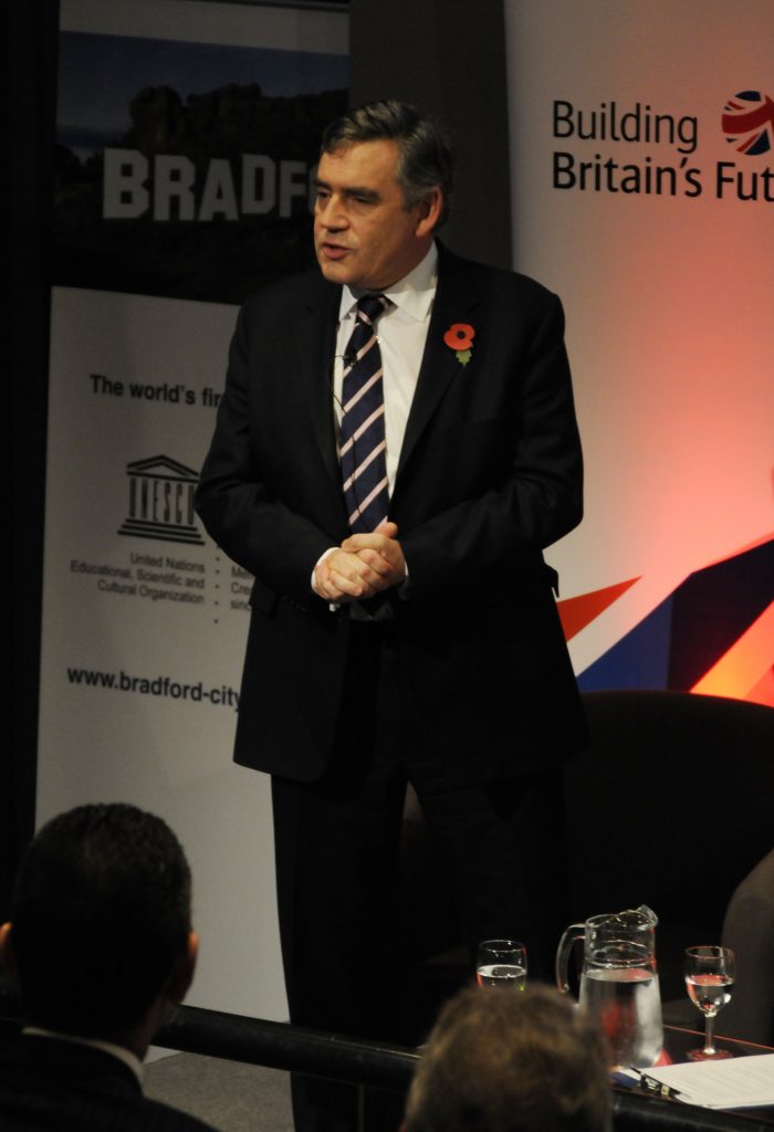 But no-one knew who it was. From there we started noticing police around the building and on the roads nearby. I turned on Radio Leeds and struggled to find a signal—and caught the end of a story about the PM being in Bradford. I positioned myself on the Level 4 balcony, and saw the motorcade snake its way to the front doors of the museum. Out stepped Gordon Brown.