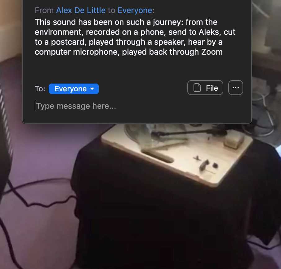 Everyone today finds themselves in their own site-specific sound environment—we are becoming accustomed to our daily sounds in this year’s lockdown. What is perhaps so exciting about the Sound Postcards project with the National Science and Media Museum is that, through aurally mapping individual spaces for others, each postcard presents new experiences of isolation. No longer isolated in our listening, we are witnessing multiple geographies and identities, our movement guided by our ears.