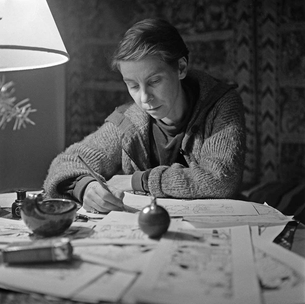 The Moomins came into being in 1945, with Moomins and The Great Flood. It was the story of a mother (Moominmama) taking her child on the long and treacherous road to reunite with his father. By the end of World War Two, this was, of course, a familiar experience for many, with people all across Europe rendered refugees, and this was very much a part of Jansson’s own lived experience.